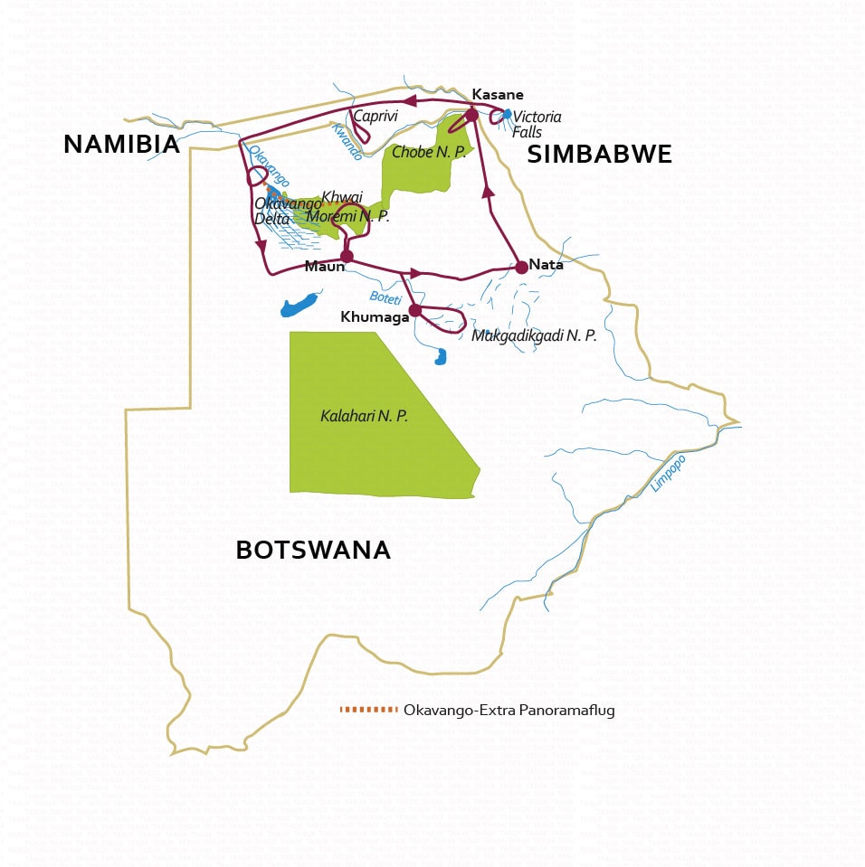 Reiseverlauf Botswana, Namibia (14 Tage)