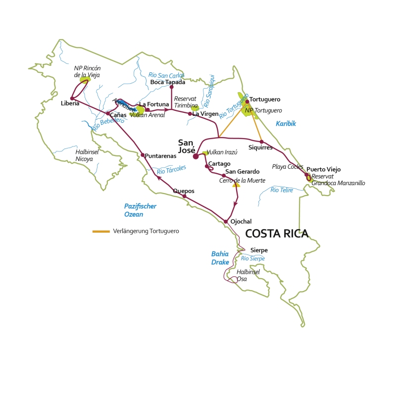 Reiseverlauf Costa Rica (16 Tage)