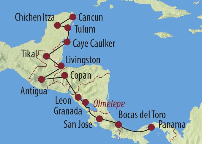 Reiseverlauf Panama, Belize, Costa Rica, Guatemala, Honduras (16/23/29 Tage)