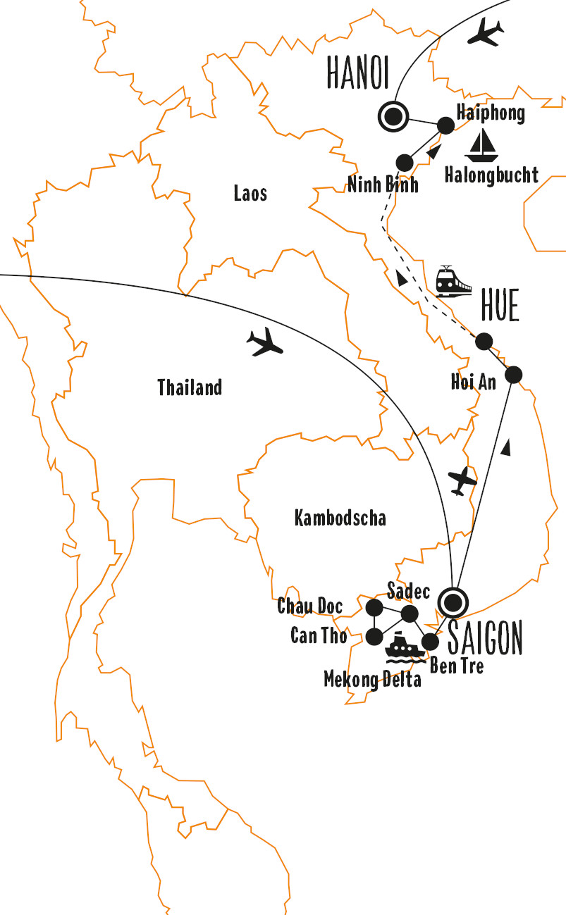 Lassen Sie sich verzaubern von den Menschen, die Ihnen mit unwiderstehlichem Charme begegnen werden, und von einem Reisestil, der Sie tief eintauchen lässt in eine faszinierende Kultur. Erleben Sie die vielen Wirklichkeiten der boomenden Städte und die in alten Traditionen verwurzelten ländlichen Regionen hautnah. Entspannung bieten die weiten Strände bei Hoi An.