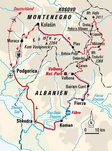 • Der Fokus dieser Reise liegt auf dem Trekking im Dreiländereck Montenegro, Albanien und Kosovo und dem noch unbekannten Teil des Balkangebirges. Der Großteil der Route folgt dem Fernwanderweg „Peaks of the Balkans“ und garantiert eindrucksvolle Aussichten von drei Gipfeln. Dabei bleibt viel Zeit für Begegnungen und Einblicke in die Kultur, in die Geschichte und die Sitten dieser Region.