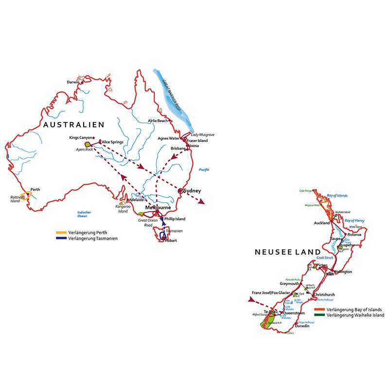 Reiseverlauf Australien, Neuseeland (29 Tage)